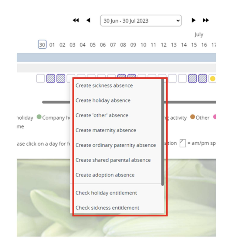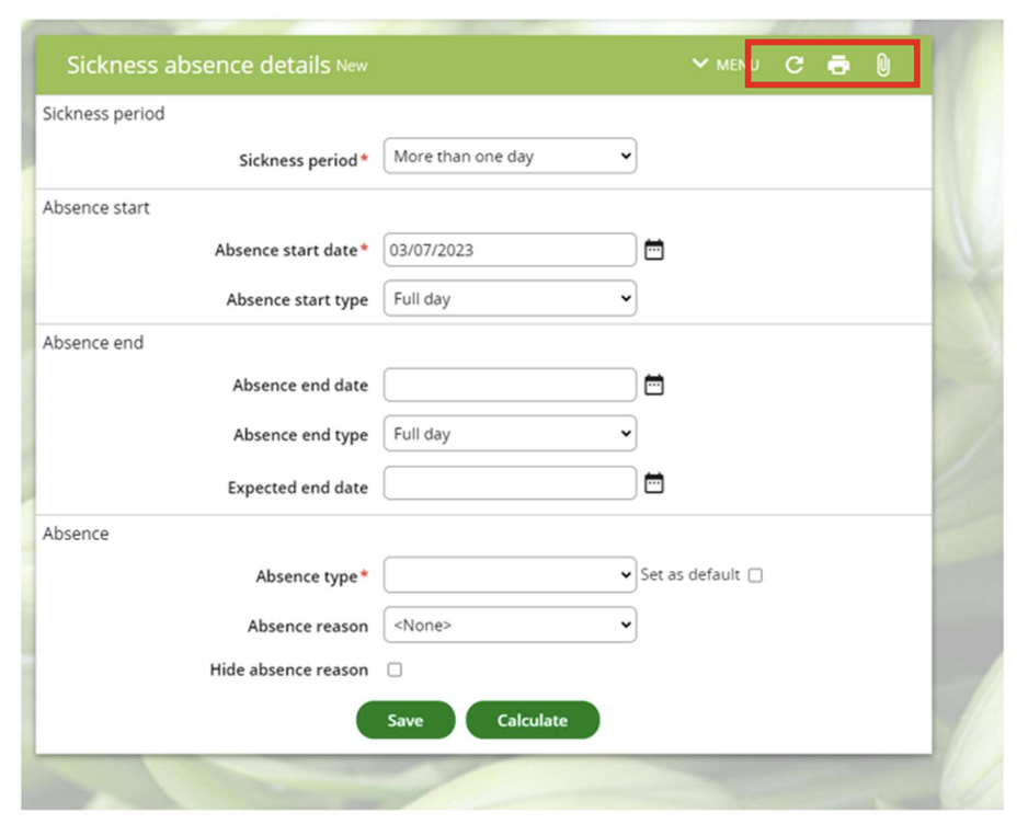 - Enter the appropriate absence dates and click the paper clip icon to insert the back to work document and / or sick note