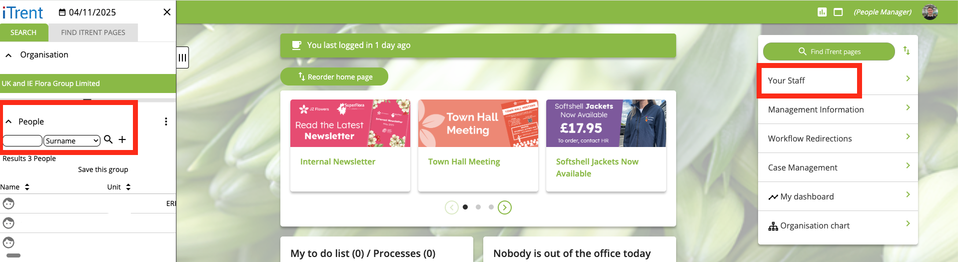 - Click Your Staff in the right hand menu, then use the find function that appears at the left side to search for the employee